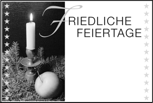 Wir freuen uns, Ihre Weihnachtswünsche werbewirksam abdrucken zu dürfen und wünschen Ihnen eine angenehme Vorweihnachtszeit.